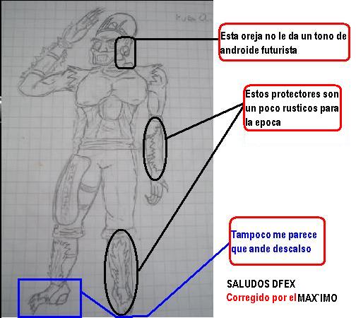 Bueno, el me realizo algunas observaciones al boceto del androide y fueron las siguientes.