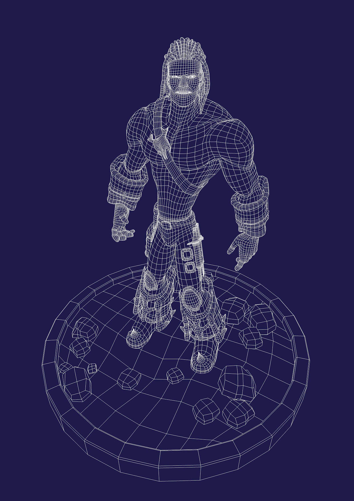 Una vez termiando el rigging ya sólo queda colocar el personaje en una postura chula, y colocarlo en una escena con una iluminación a su medida, y. Render.