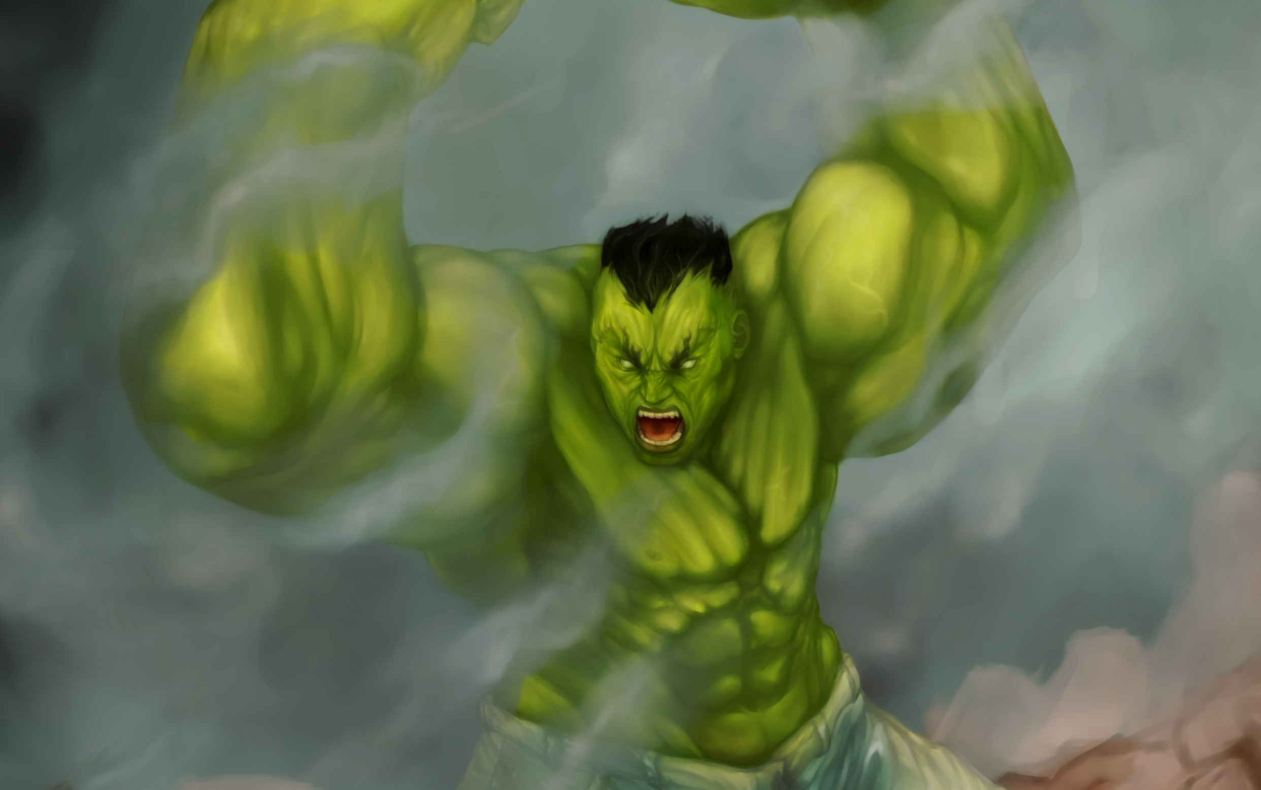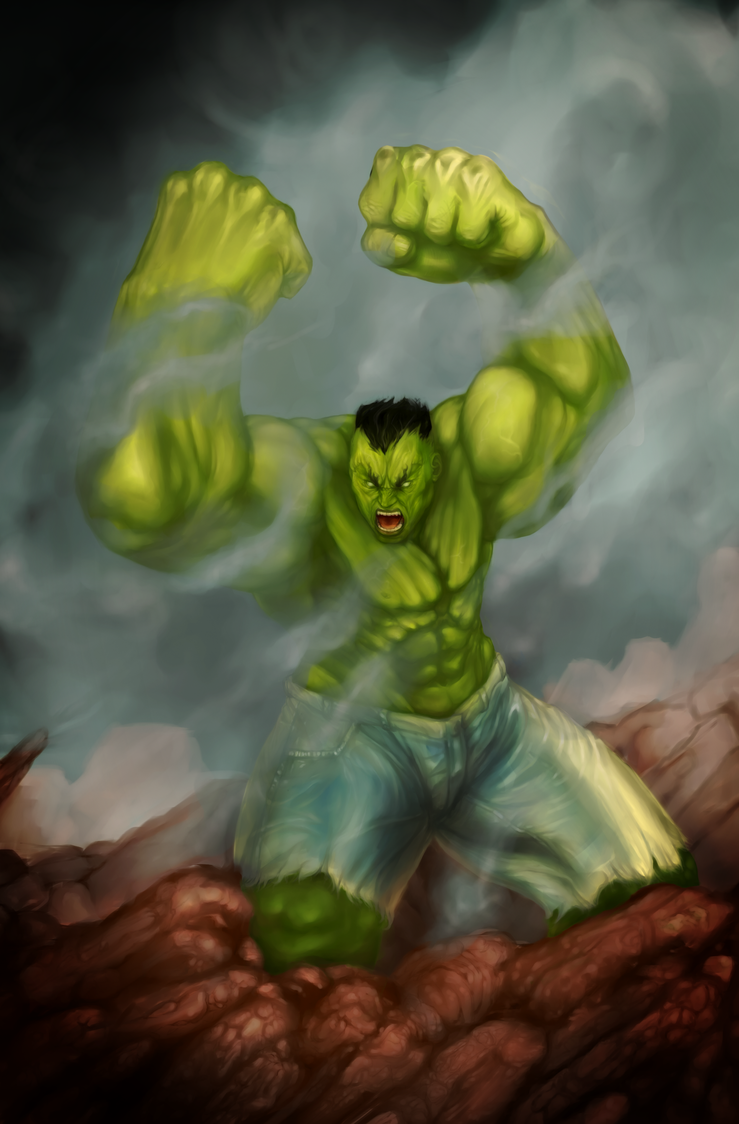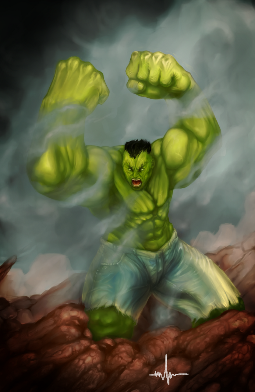 Buenas. Les traigo este dibujo de Hulk esta realiza en su mayoría con my Paint y tiene algunos retoques hechos con Gimp.