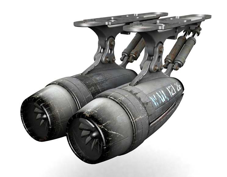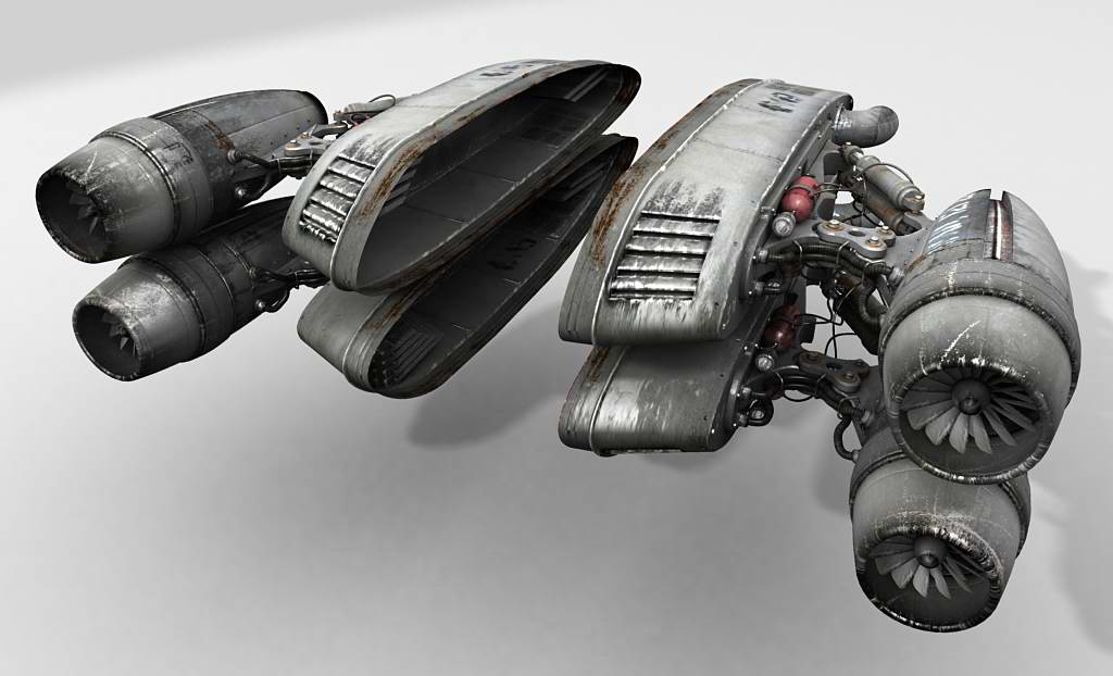 Genial, las texturas son muy buenas. Otro detalle, pero a nivel operativo: ¿cómo funcionan las turbinas? Digo, no tiene tubos de combustible ni energía. Son autosuficientes.