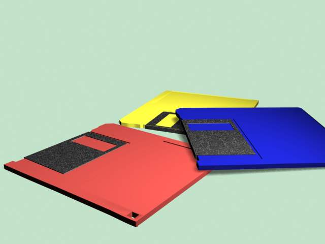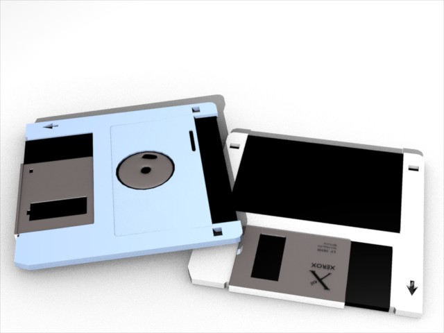 Bueno, un diskette en 6 min, tampoco me he calentao mucho la cabeza, pero ahí lo tienes, este es como ha quedado con un texturizado de 2 min y el modelado que aparece en el video, que, por cierto, no sé dónde alojar.