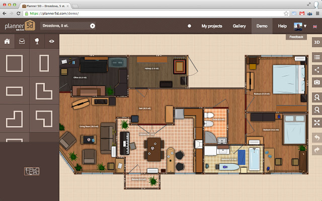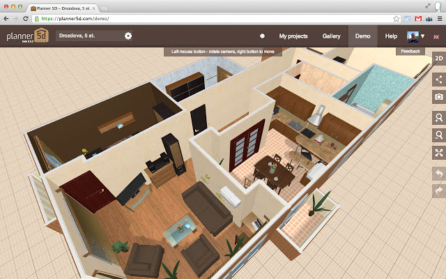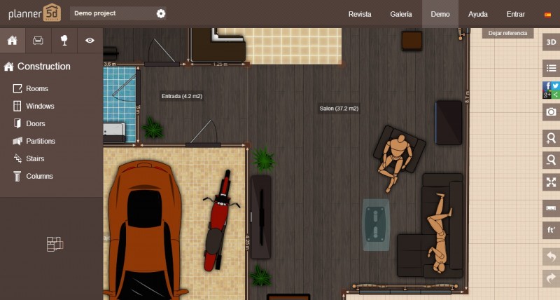 Planner 5d es una herramienta sencilla y gratuita, servirá para hacer un plano sencillo y sin esperar la calidad que puedan dar otros programas, pero para empezar en el mundo de las 2d y 3d o para hacer algo puntual, no está mal, además dispone de plantillas predefinidas que podremos modificar a nuestro gusto variando las dimensiones, texturas, luces, mobiliario, también permite trabajar por capas y tiene motor de render, permite animaciones.