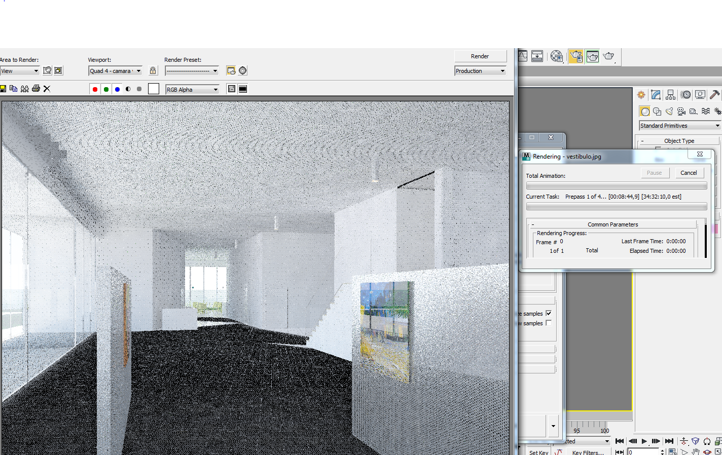 Hola, ¿Qué tal? Estoy realizando un trabajo para la universidad con 3dsMax 2012 y Vray. El problema principal que tengo son los tiempos de render. Me piden imágenes a 4000x3000 píxeles, y al aplicarle la configuración que me recomiendan ellos, el render se va a 70 horas. He probado a bajarle la cantidad muchísimo, dejando el Light Caché a 100 y el Irradiance Map en very Low y aun así tarda muchas horas, con lo que no puedo hacer pruebas de render ni siquiera. Con un tamaño más pequeño (1000x800) tarda unas 4 horas.
