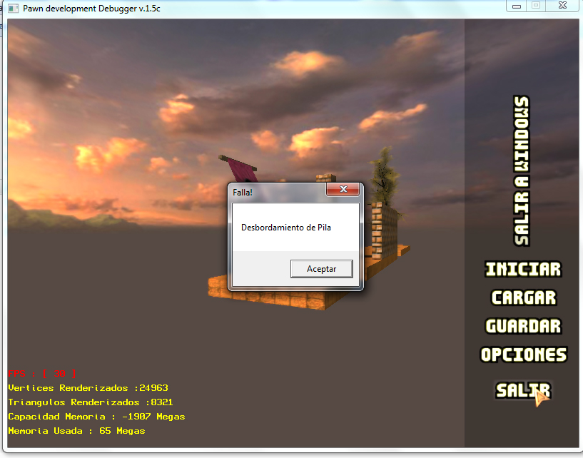 Vuelvo a abrir y entonces llega hasta iniciar, pero cuando presiono el botón, error, luego he probado otra cosa, a presionar escape y así pasar a la siguiente pantalla. Y a logrado entrar en el juego.