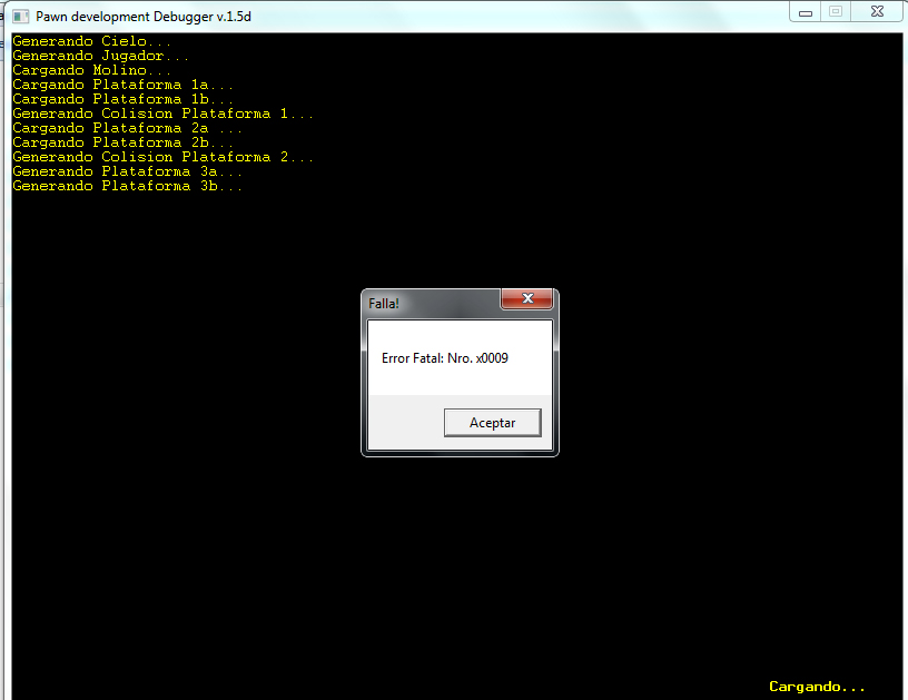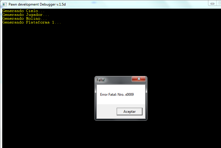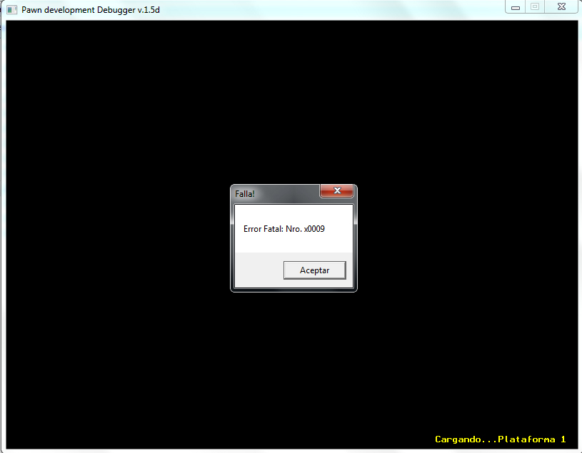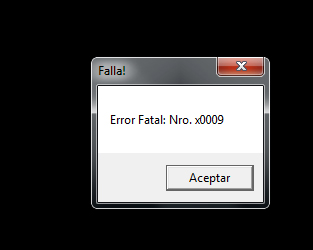 Cuando me caigo de la plataforma da un error fatal: nro. X0009 sigue adelante con ello y ánimo amigo. Windows 7 de 64 bits Home Premium.