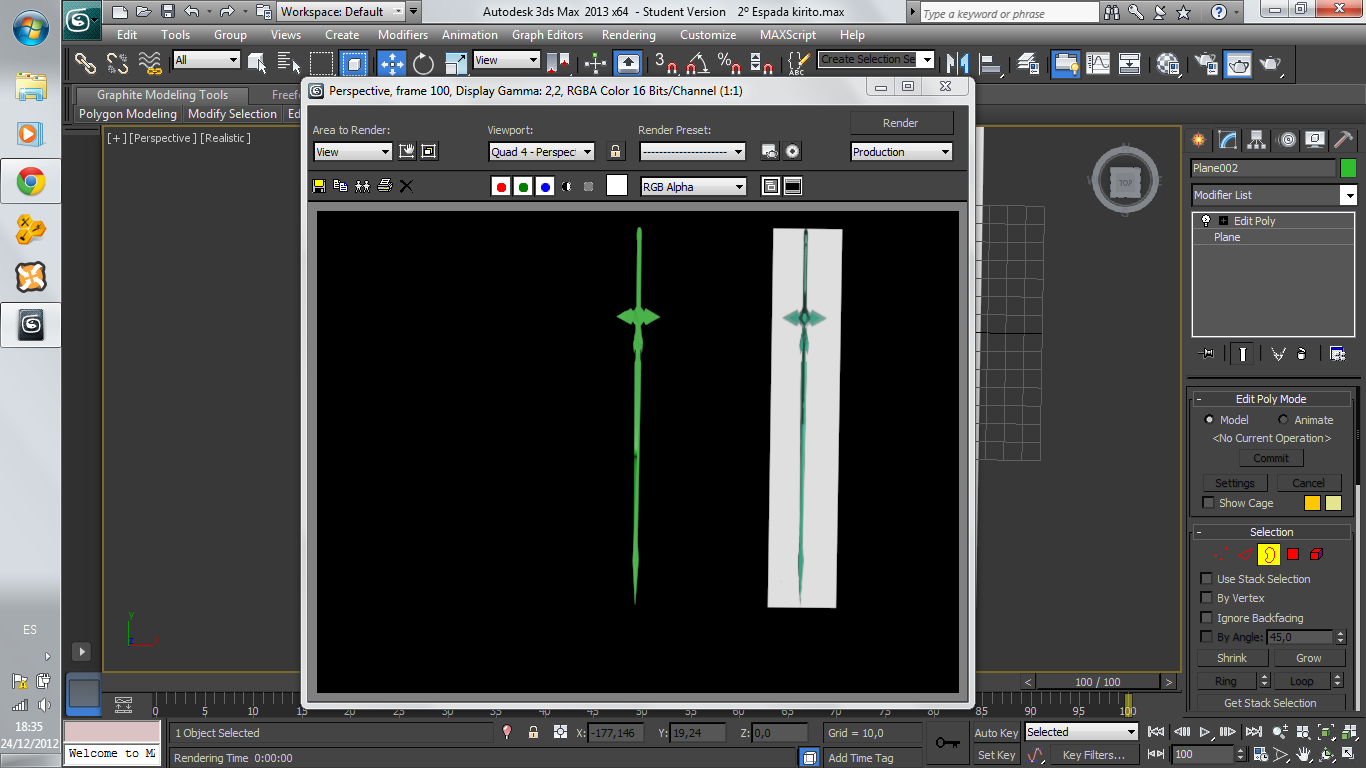 Después crea un plano que sea la hoja de la espada, humilde en Edit Poly y mueve los vértices cómo se necesite.