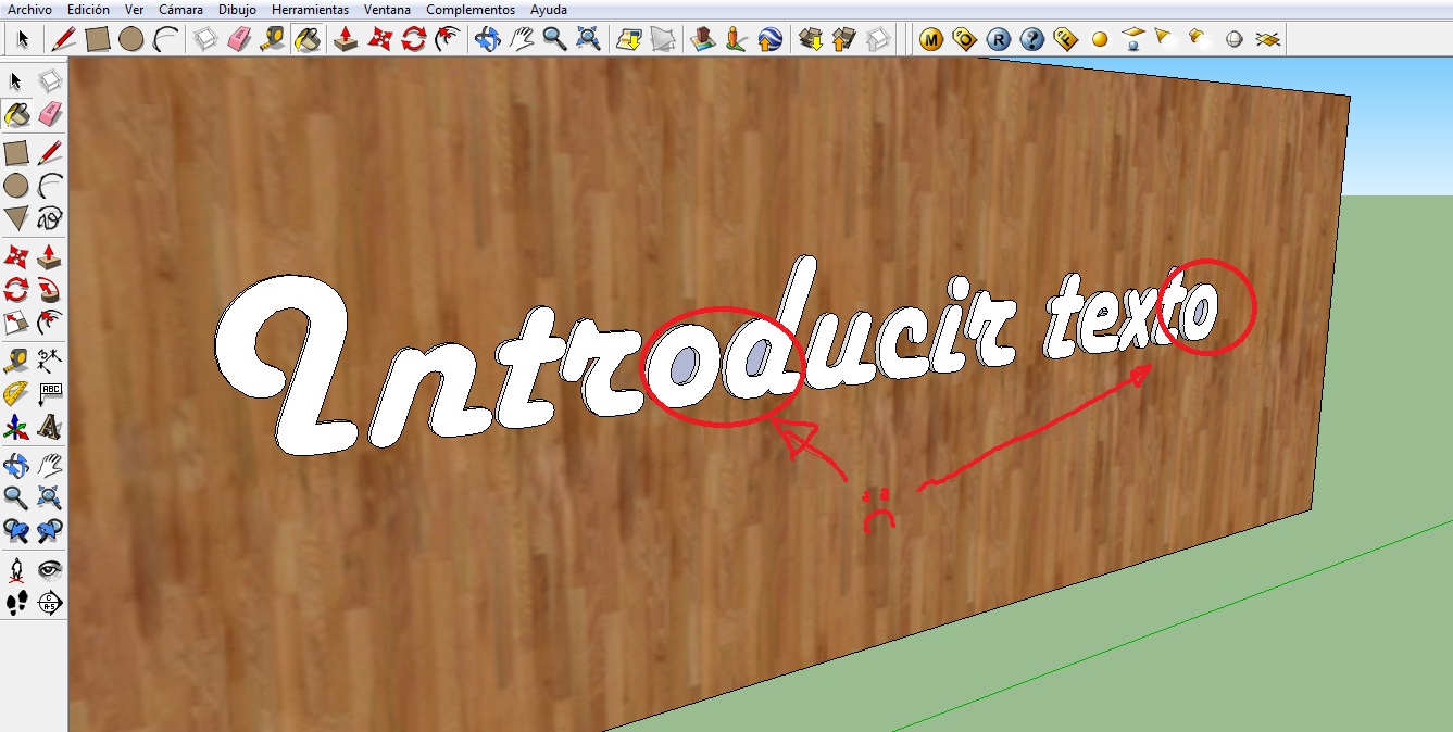 Hola amigos soy nuevo aquí y estoy aprendidendo a usar SketchUp profesional 8, el asunto es que lo primero que se me ocurrió hacer fue un cartel con letras caladas y siguiendo el siguiente procedimiento.