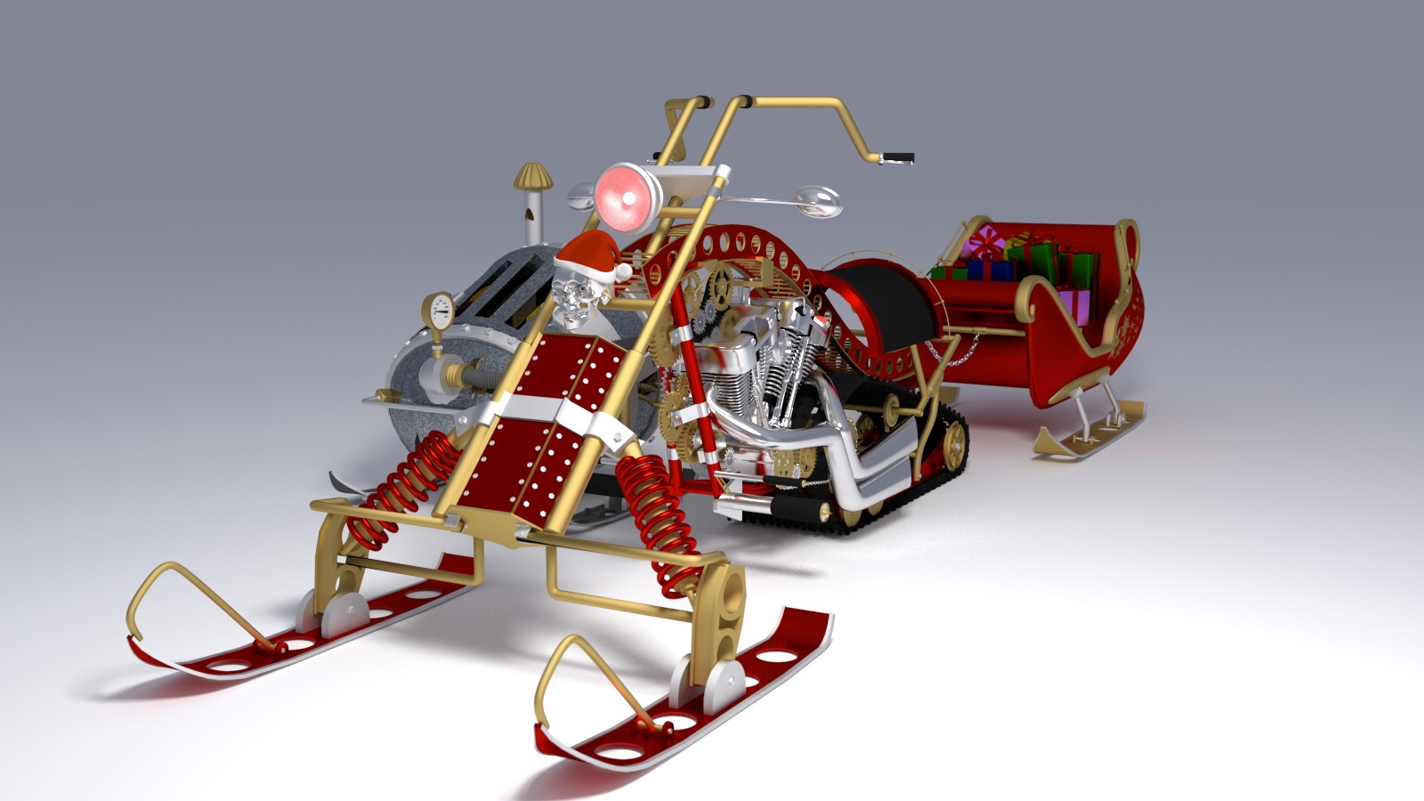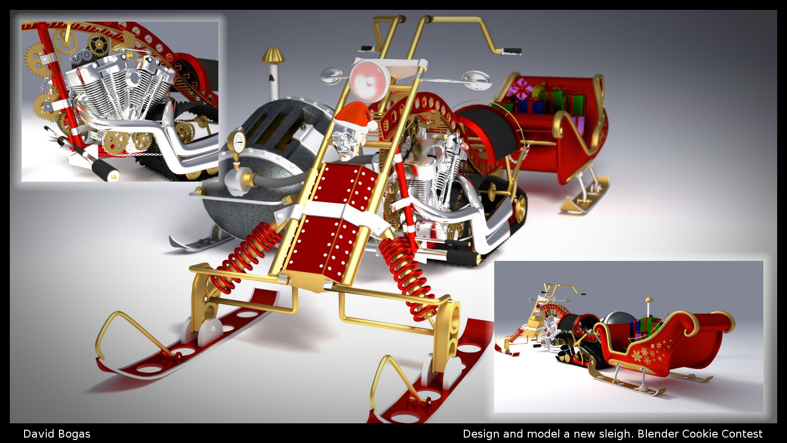 Muy buenas a todos. Aquí os traigo mi último trabajo. Lo he hecho para el concurso de blendercookie de estas navidades. Se trataba de diseñar y crear un trineo de Santa Claus, pero que fuera original claro.
