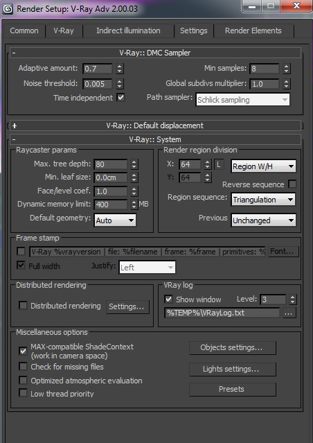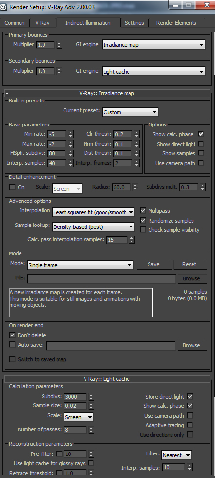 Con estos valores me tarda en renderizar cada imagen un media de 5 horas (Pentium i7 con 8g Ram).