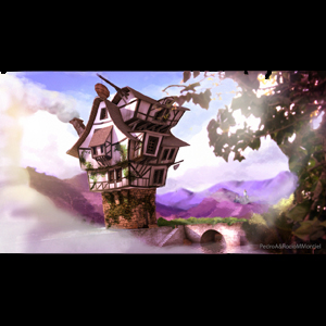 El castillo-ciudad en las montañas del fondo, parece cortado y pegado, no parece integrado en el fondo.