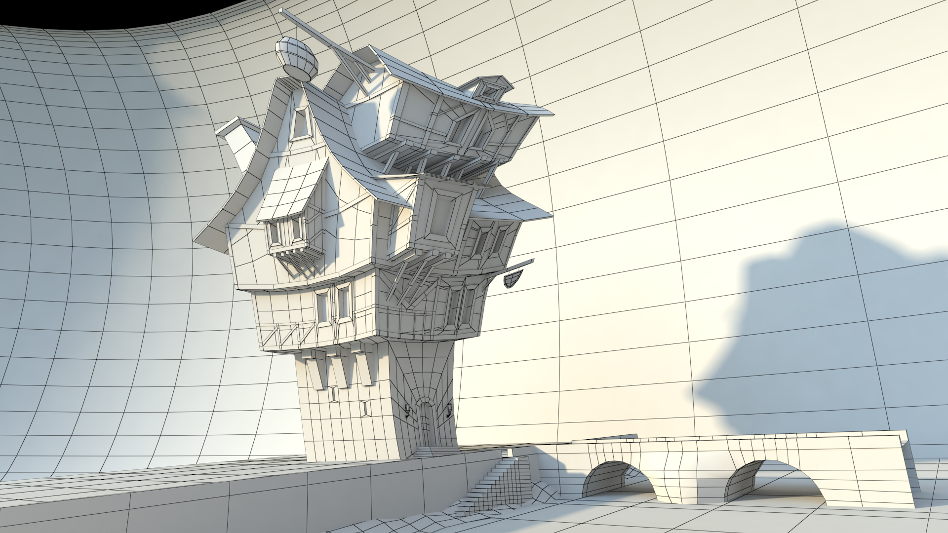 En general se ve un trabajo currado. Especialmente me gustan los desenfoques del árbol, el humo, el agua, los detalles, el modelo cartoon exagerado-distorsionado, el concepto.