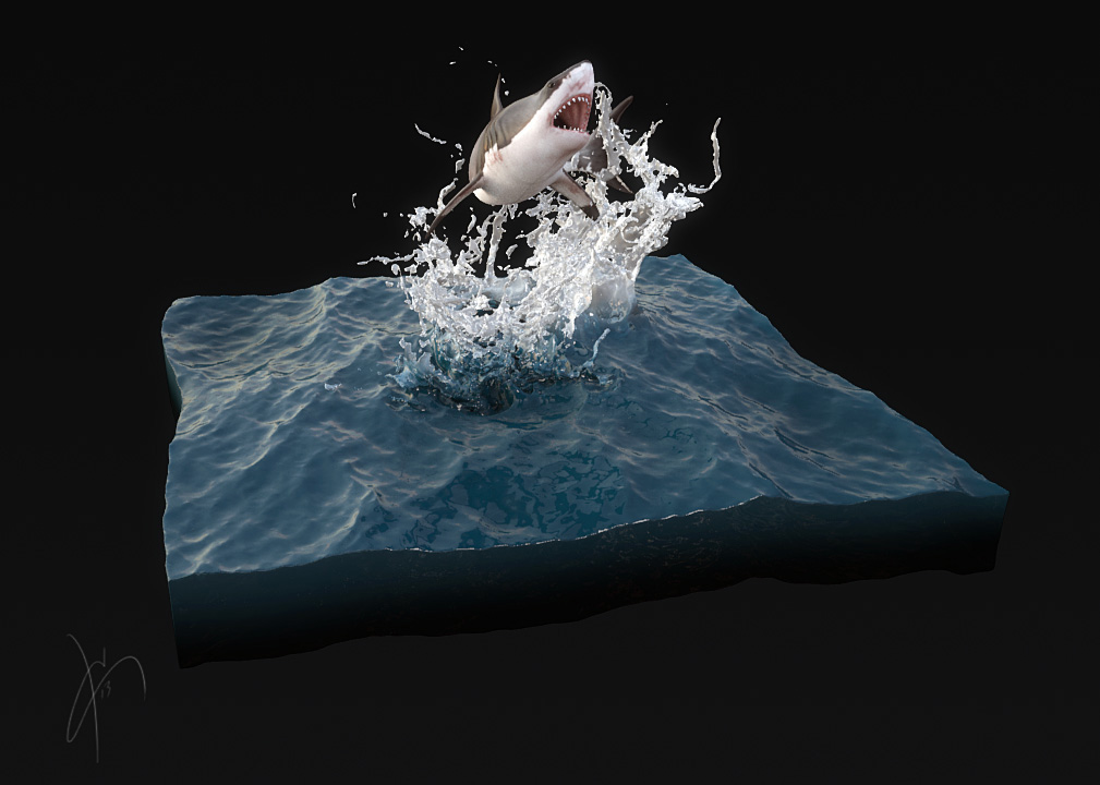 Hola a todos, hace no mucho hice un salto de tiburón, era el primero algo así tal como un reto sobre fluidos y efectos, no me había convencido el tema de ton para eso, tampoco el splash me gustó mucho, soy un gran fan de tiburones blancos, entonces decidí empezar otro proyecto similar, pero esta vez todo realista posible y tratándose sobre foca que escapa del tiburón en pleno salto, intento todo al máximo real posible y será un reto, a ver cómo sale. Os dejo actualizaciones de mis trabajos, espero que os guste, comentarios y críticas son bienvenidas para mejoras u otras cosas, un saludo, Carlos.