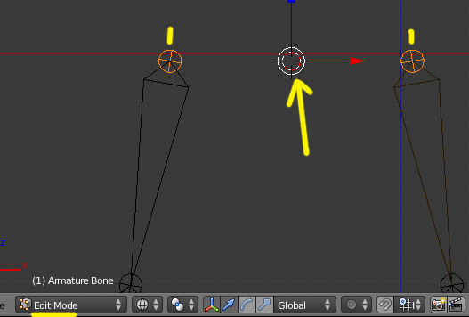 Pues seleccione en Edit Mode solos ejes de esos Bones (huesos) y presionas shift+s y la opción cursor todo selected (colocar el cursor en el centro de lo seleccionado)