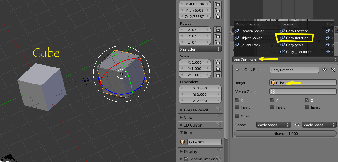 El problema al utilizar esa constraint así es que, al rotar a siempre rotaria c, aunque podrías bajar a cero el parámetro de influence de la constraint. Qué cosas tiene Blender, cada vez me gusta más.:col.