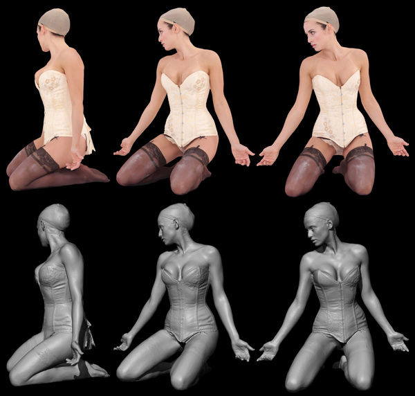 Como si de una sesión fotográfica normal y corriente se tratara, se escaneaban los modelos reales, el hardware empleado es capaz de capturar 1,27 gigapíxeles de datos a color y a 360 grados, esto permite construir un modelo mediante un único disparo en el proceso de captura.