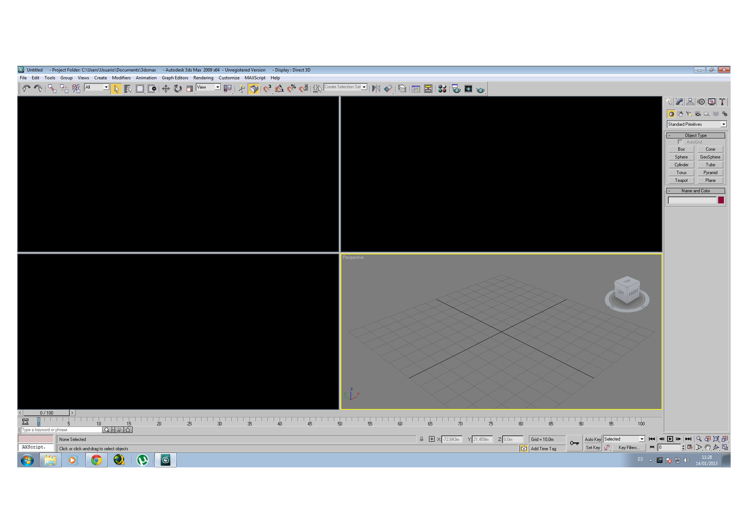 Hola. Tiene todo el aspecto de ser un problema de video. Prueba actualizando los controladores de tu gráfica. Otra prueba que puedes hacer es cambiar el driver en el 3ds Max. Por defecto usa Direct3D, prueba con OpenGL. Yo uso el 3ds Max 2012 y tengo una gráfica algo obsoleta y tuve que hacer esto hasta que cambie mi gráfica.