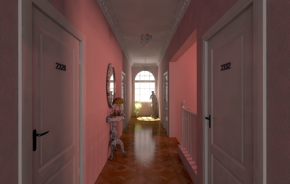 La altura de las puertas en primer plano parece algo baja, aunque debe ser por la perspectiva porque las del fondo se ven bien, el grano de la pintura lo haría un poco más fino o suave.