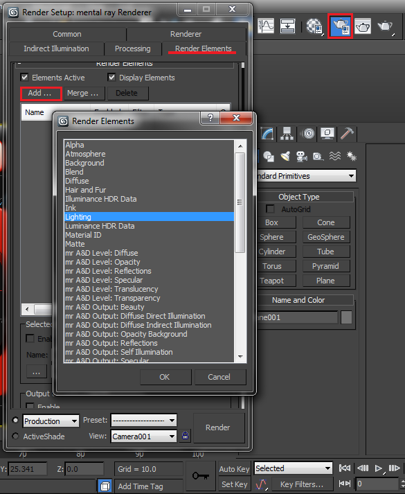 3. En la pestaña indirect illumination desactiva FG y GI, en la pestaña processing activa la casilla material override y asignarle como instance el material que acabas de crear.
