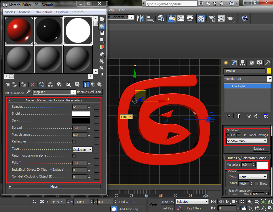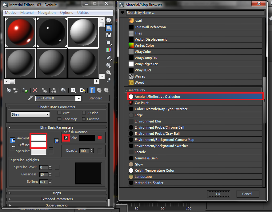 1. Crea un nuevo material totalmente blanco, activa la casilla color en self-ilumination y asígnale el mapa ambient/reflective Occlusion.