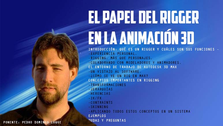 Partiendo del trabajo previo del modelador, el rigger es el encargado de diseñar las herramientas que el animador utilizara para dotar de movimiento a los personajes y objetos tridimensionales. Sin la labor del rigger, el resultado final resultaría inverosímil y dislocado, como un esqueleto sin articulaciones. Por ello, el rigger necesita de conocimientos precisos sobre anatomía, nociones sobre física y un alto nivel técnico en el manejo de software como Autodesk 3ds Max. Todo ello convierten en una pieza indispensable en un sector que en el año 2012 facturó 342 millones de euros (el libro blanco de la animación, 2012).