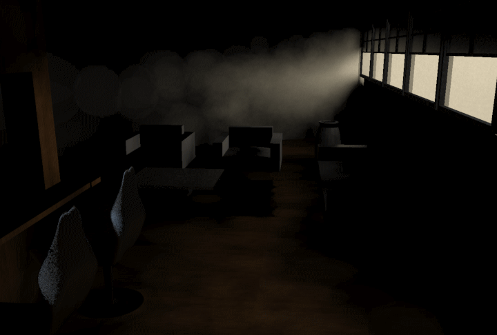 Hola, debes bajar la potencia de la luz que entra por los ventanales para que no te que me la escena.