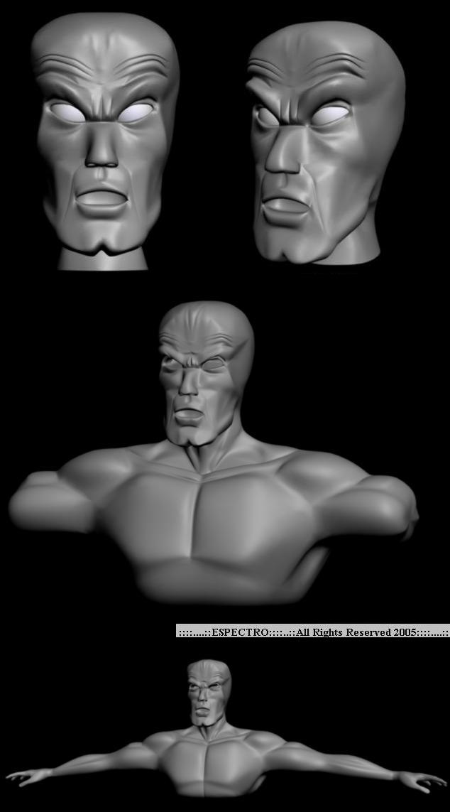 Hola, estas imágenes son un recuento del trabajo que he realizado en este modelo. He comparado los músculos del modelo con músculos de varios luchadores y he tratado de ser lo más objetivo y preciso, me falta mejorarlo un poco más en lo que se refiere a los músculos frontales también de la parte posterior del personaje.