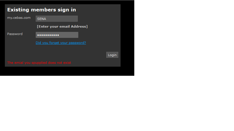 No creo que nadie te facilite una cuenta de acceso a Cebas, ya que son personales y cada uno debe tener la suya, además es más que probable que no puedas descargar el mismo software más de una vez ya que son versiones de pruebas, si no lo has descargado nunca, como parece ser ya que no has podido acceder, haz lo siguiente, entra la página de Cebas y ve a la sección de descargas, en ella pulsas sobre did you forget your password? Y seguidamente pones el mail con el que te registraste en el formulario, te lo indico en la imagen: