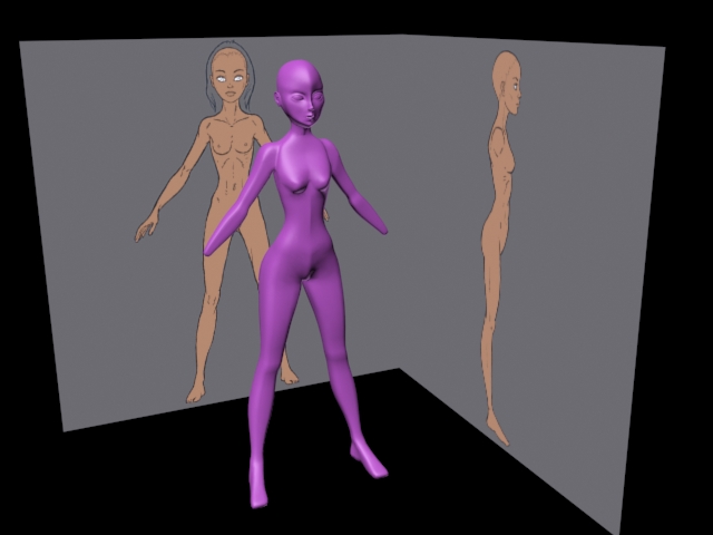 He estado siguiendo el famoso tutorial y de momento llevo la cabeza y el cuerpo, mañana empezaré con los accesorios. Utilicé editable poly en lugar de editable mesh y symmetry en lugar de mirror. Me perdí un par de veces, así que, seguramente esté llena de errores.