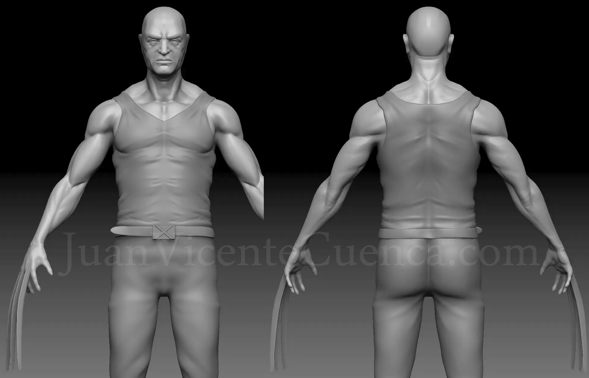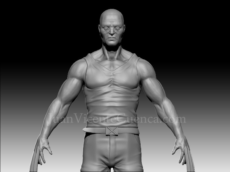 La verdad es que el modelado está muy bien, pero para mí el Lobezno de los cómics es un tío muy bajo y muy ancho, cargado de espaldas. En tu modelo es demasiado proporcionado, aunque no sé si estas basándote en otro concepto.