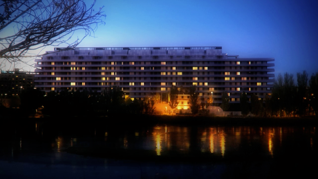 Primer video de una promoción inmobiliaria a la orilla del río Ebro a su paso por Zaragoza, España.