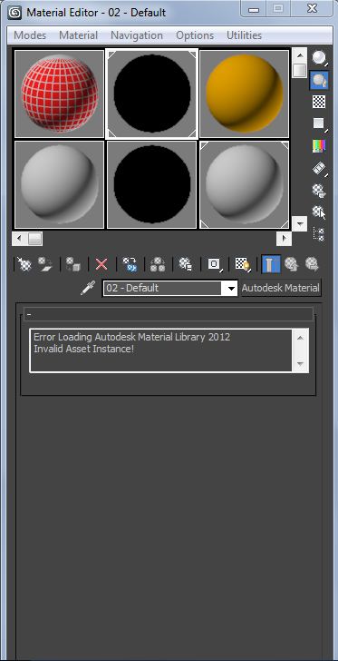 Tengo el 3ds Max 2013 y al abrir el editor de material no tengo los materiales que debería tener, ni Mental Ray ni Vray, no los encuentro por ninguna parte. Si abro una escena con antiguos materiales, o me salen modificados a materiales opacos o me sale lo siguente: