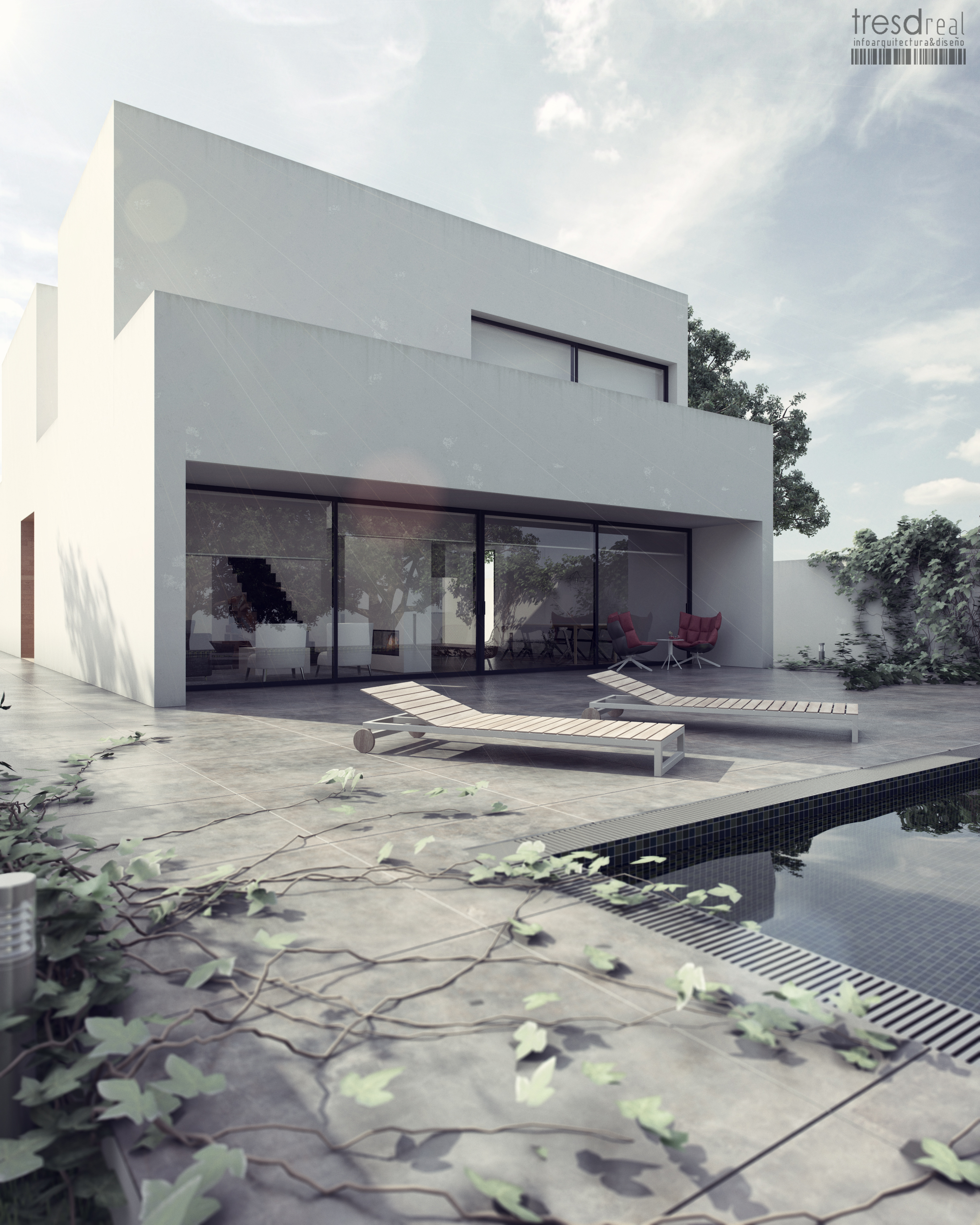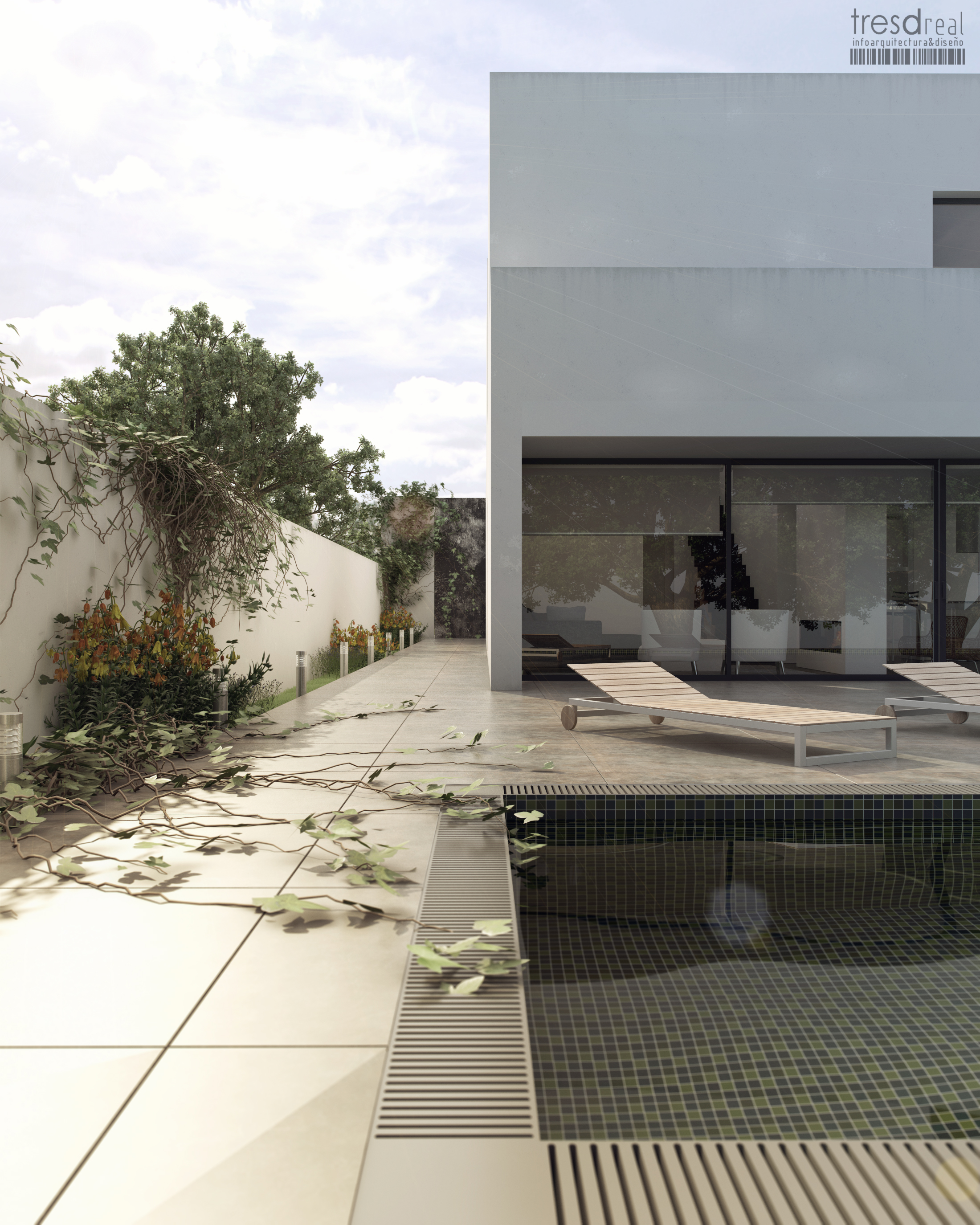Sólo voy a criticar una cosa (para intentar aportar algo), pero no tiene que ver con la calidad, sino más bien, con la escena. Supongo que son trabajos que haces para arquitectos y su función principal es ayudar a vender el proyecto. Desde mi punto de vista, totalmente personal y subjetivo, creo que las plantas por el suelo de la piscina le dan un aire de abandonado al conjunto.