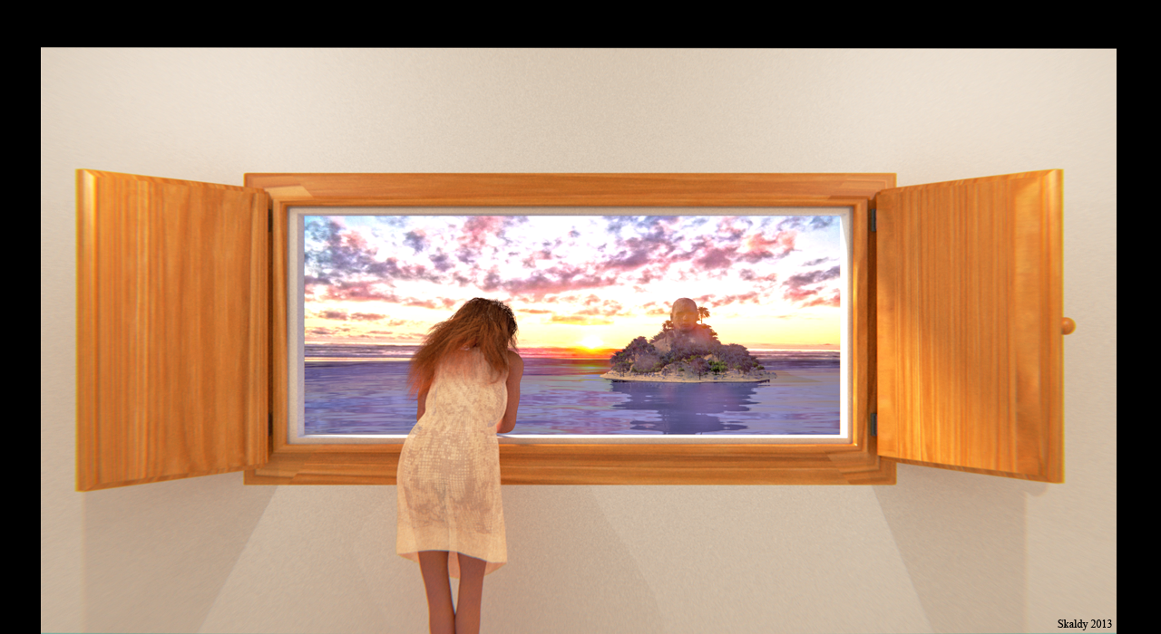 Buenas. Pues dejo un último trabajo, como el nombre indica Mujer en ventan, Modelado todo en Blender, renderizado en Cycles en 2 partes fondo y la habitación.