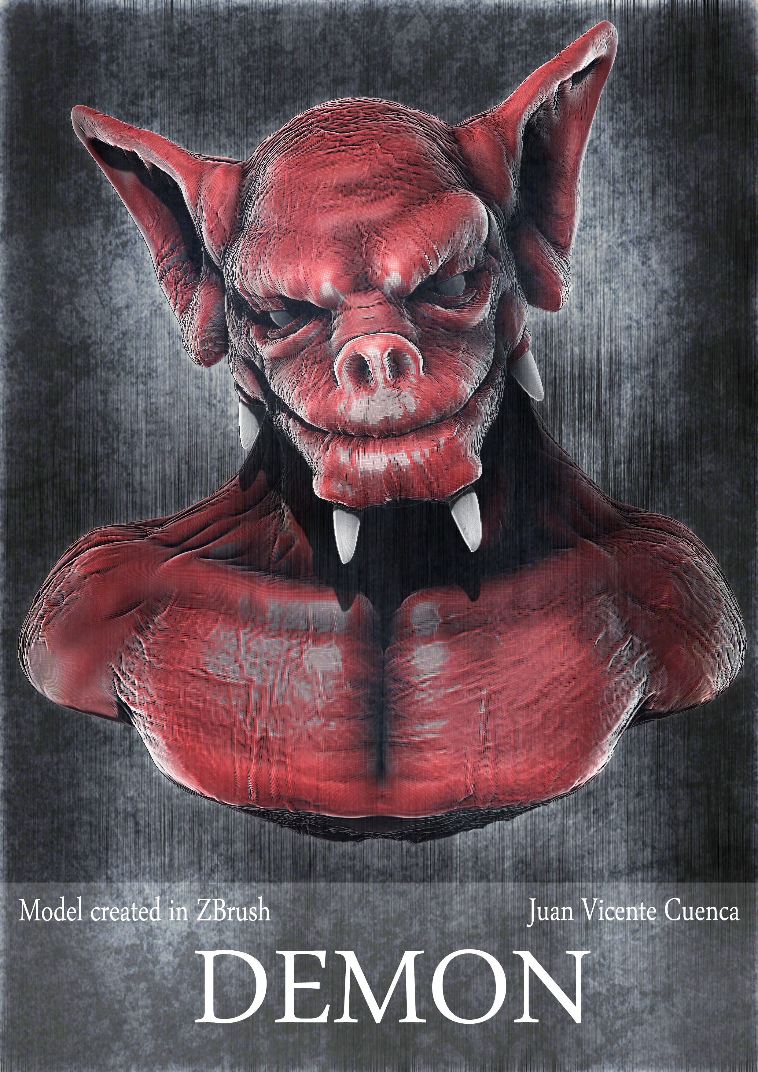 Hola. Os traigo un busto de un demonio hecho a partir de una esfera con Dynamesh. Renderizado con BPR y Adobe Photoshop. Ha sido más que nada, para ver cómo me manejo con la tableta gráfica. -- IMÁGENES ADJUNTAS --