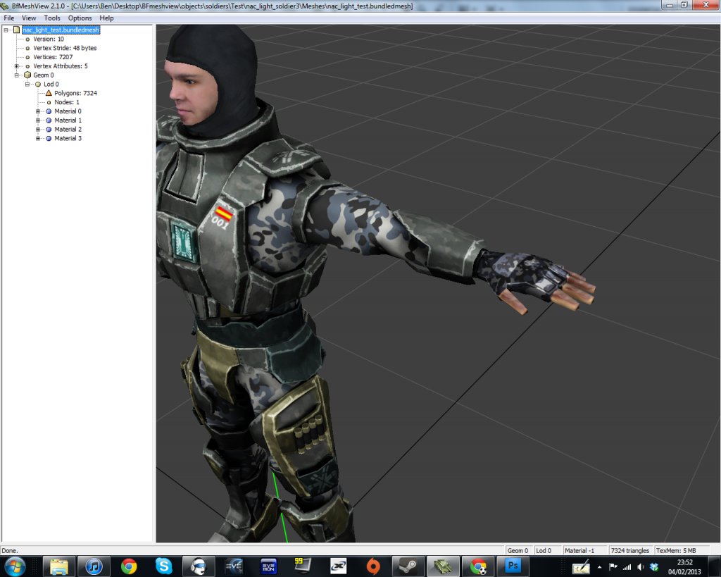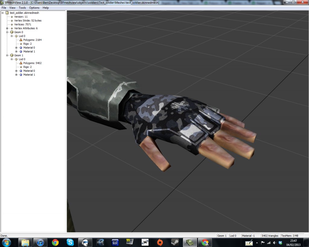 El trabajo es, crear unas nuevas manos para un personaje que representa un soldado, cuyas manos son demasiado estrechas para poder anirmarlas 40 euros o crear una nueva textura de las manos por 20EUR. Por otro lado, en el aspecto de animar, animar el figura por 90 euros (tanto en primera como en tercera persona) y 180 euros por las dos figuras que se necesitan animar.