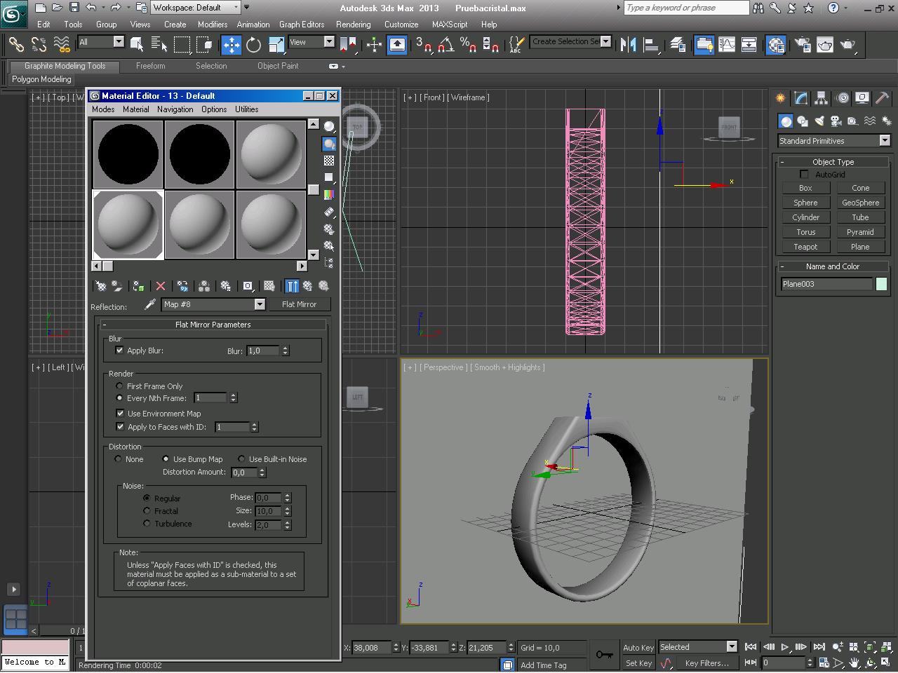 Si kereis os envio la fotografía, tengo de fondo de background el cielo, un bloque en la escena con material como reflejante Flat Mirror y un anillo que se refleja en el espejo anterior, pero el anillo en el bloque espejo se ve difuminado, no se ve claro. Gracias por los links, los mirare atentamente