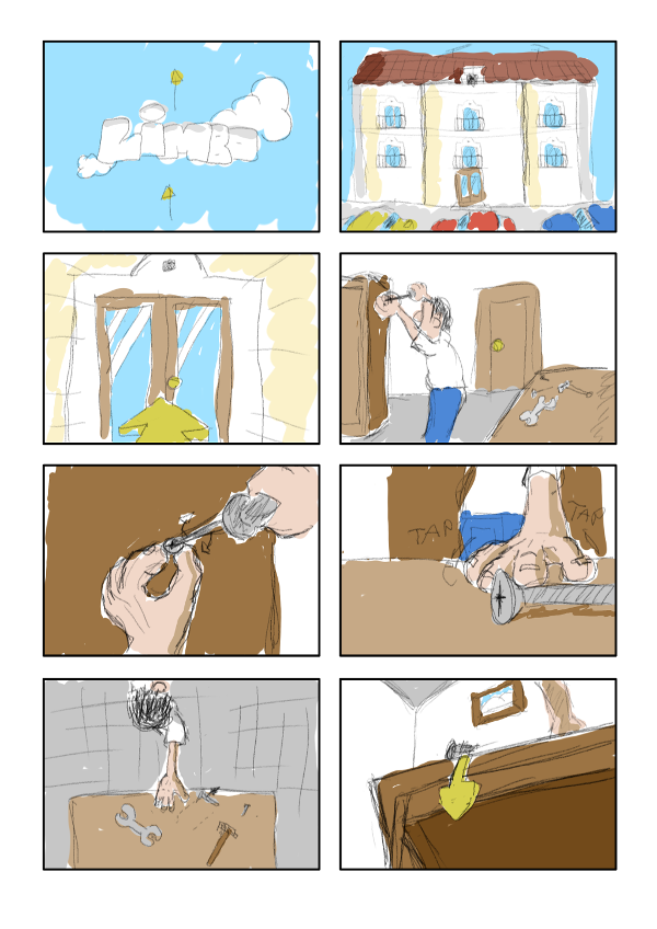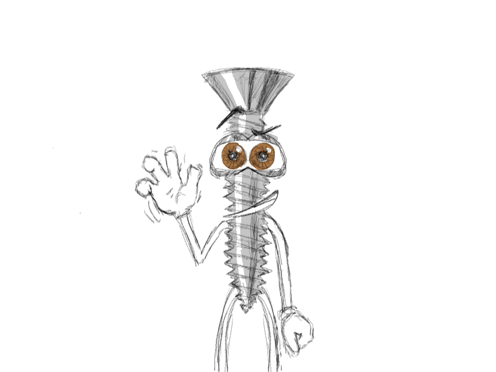 De momento tengo el guión hecho, que no creo que cambie mucho, y el boceto de un par de personajes. Trata sobre un tornillo perdido que se encuentra con un clip de pelo monísima y se enamoran, básicamente (no voy a contarlo todo, que me plagiais).