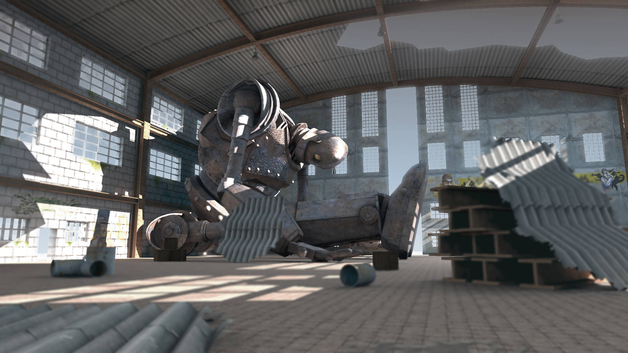 Buenas como yo os he comentado en mí anterior mensaje aquí os dejo mi primera imagen acabada, es el gigante abandonado y apagado dentro de un hangar, sé que he de mejorar un montón de cosas, pero para ser mi primera imagen estoy muy contento con el resultado. Espero vuestras opiniones. Un saludo