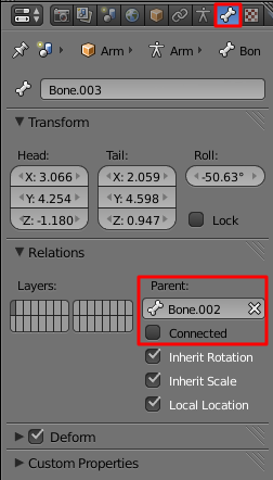 Buenas chicos, estoy empezando en esto del modelado 3D y trasteando me ha surgido la siguiente pregunta. ¿Cómo conectar bones mediante líneas discontinuasí (sin usar Shift + D, que es la forma de duplicar el hueso) Una imagen para qué