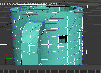 Hola, estoy modelando una taza sencilla en 3d Max, y de repente me percate demasiado tarde que cometí un error y le hice una extrución a un polígono donde no debía, y ahora no sé cómo volver a alisar la malla, en la siguiente imagen se puede ver dónde está el error por favor aconsejenme: