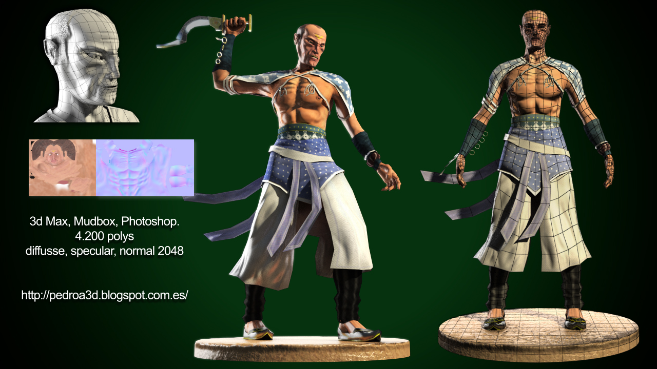 3d Max, Mudbox y Adobe Photoshop para las texturas, el rigging lo hice con Cat. Saludos, espero que os guste.