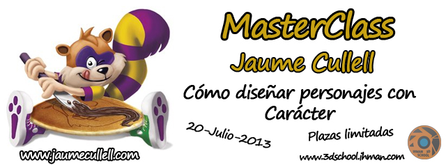 La persona qué se apunte antes del lunes al curso de creación de personajes, modelado o rigging tendrá una inscripción gratuita a la MasterClass de Jaume Cullell del próximo 20 de Julio.