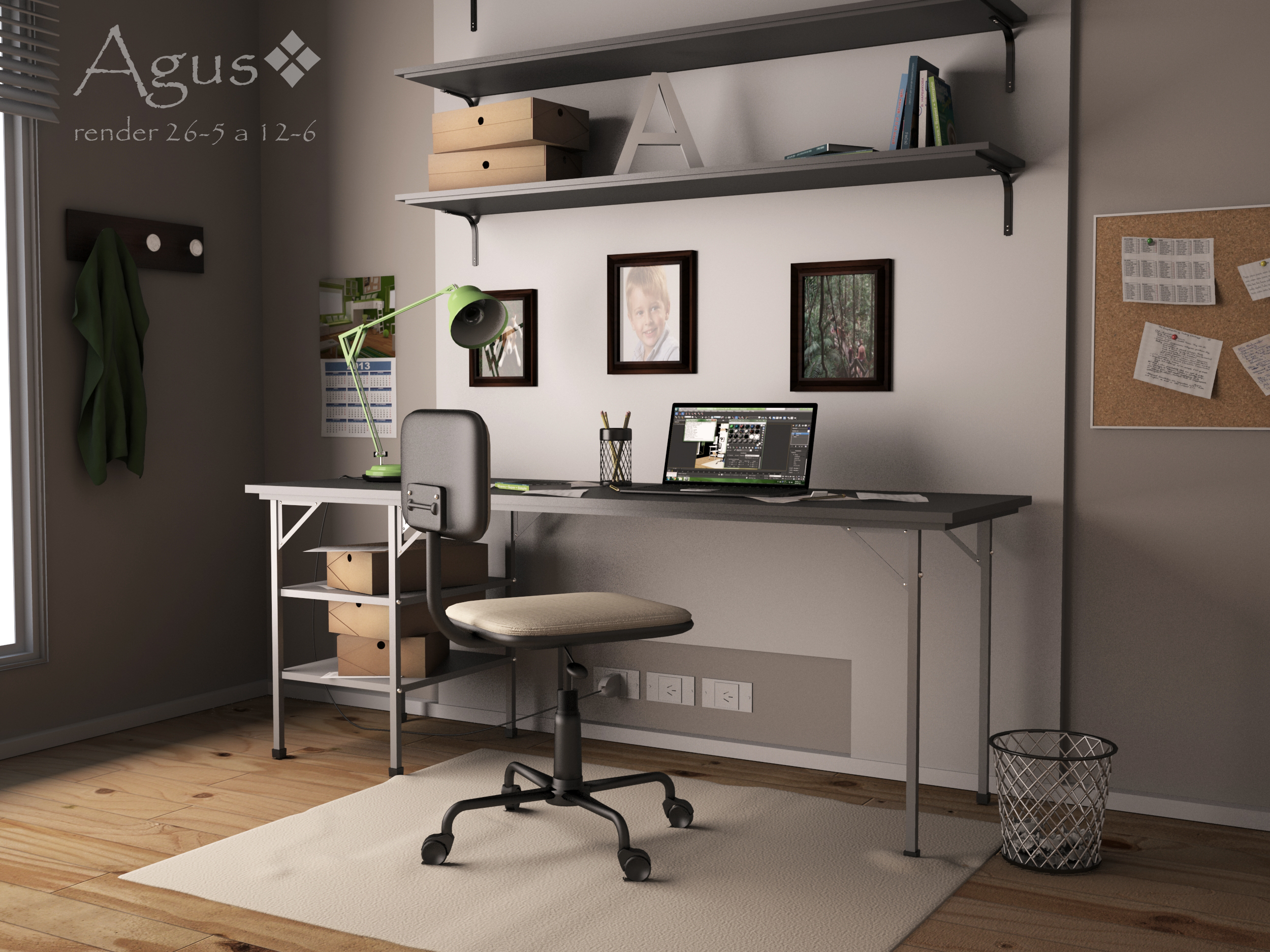 Hola Agus. Tienes un buen render aquí, con una sencilla y buena idea, aparte la composición de elementos es agradable. La posición de la luz y como llega esta a la estancia es efectiva, no necesita mucho más trabajo.