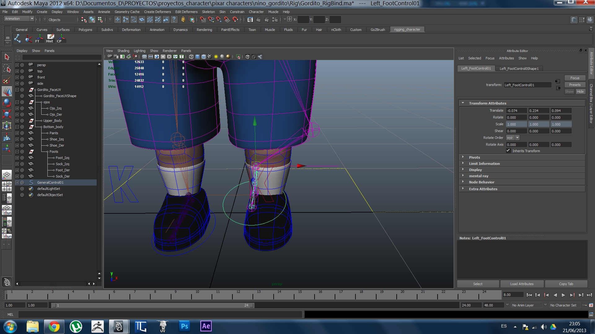 Buenas noches amigos, tengo un problema con la rodilla del Rig que estoy haciendo, como verán en la imagen cuando intentro flexiónar la pierna, la rodilla en determinado momento gira hacia detrás, el problema es que después de hacer los IK comprobé y funcionaban, sospecho algo con su Pole vector tal vez? Gracias por atenderme.