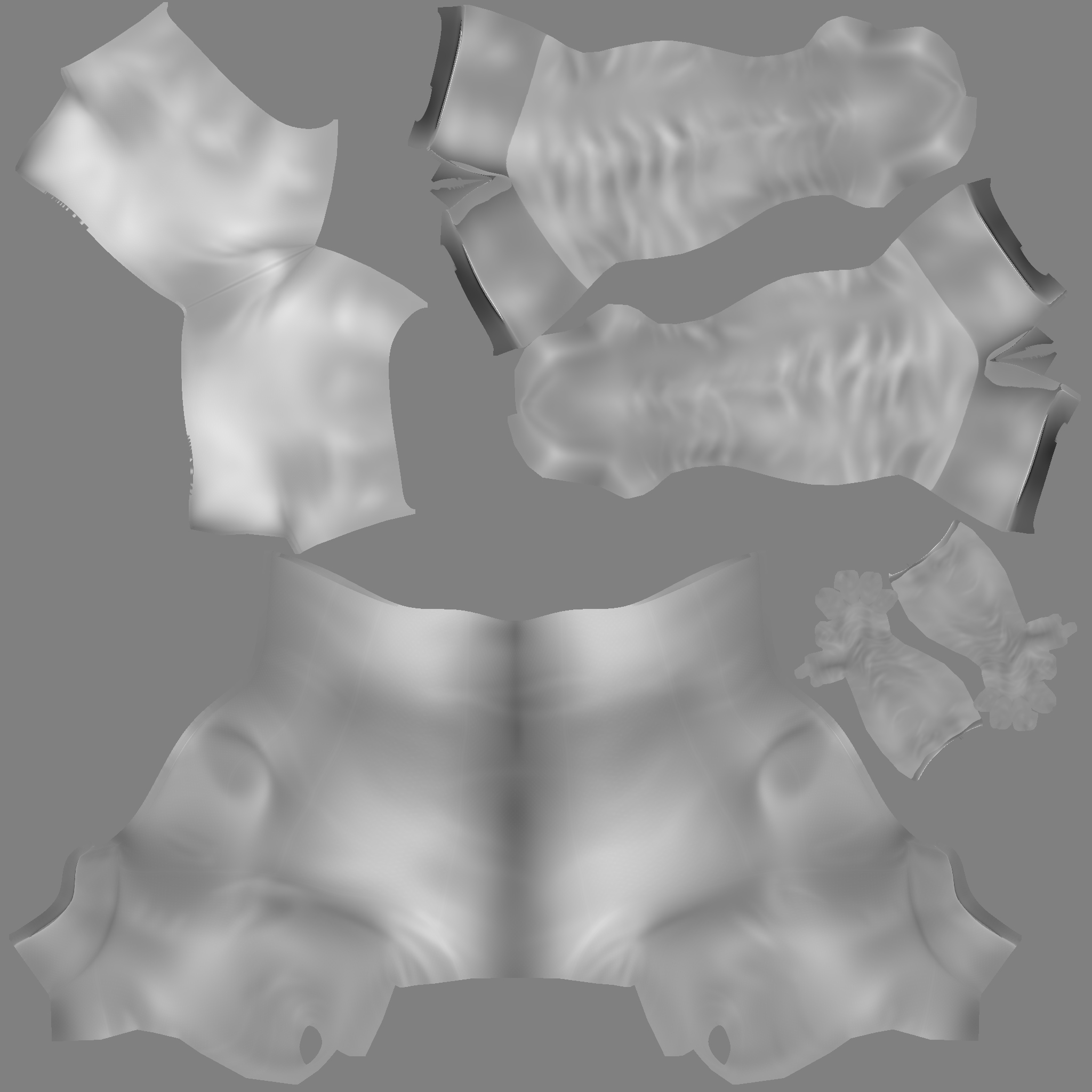 (Supongo que el mapa en b/n es el del displacement map y el de violetas el del normal map).