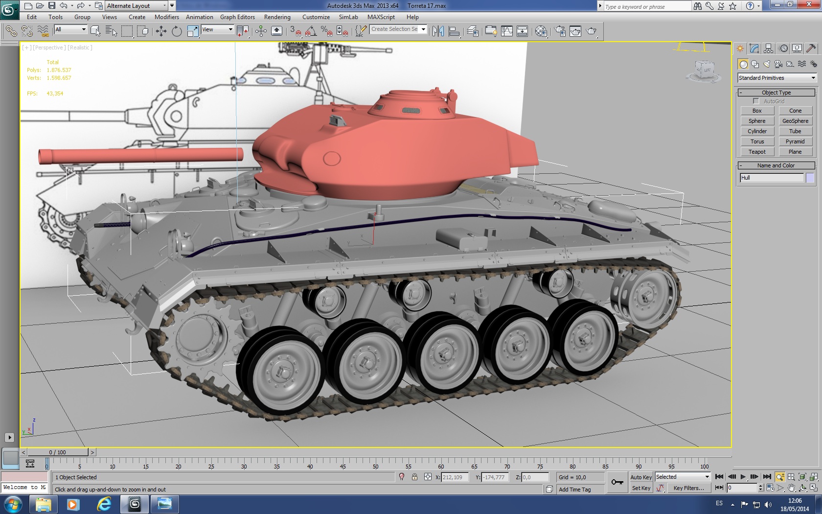 Empezamos con el precursor de la famosa serie Patton (M-47 y M-4, actuó a finales dé la IWW, más en Korea y algo en Vietnam. España tuvo los suyos también. La barcaza ha sido un poco más complicada de lo que parecía. Yo creía que era plana lateralmente, pero al tener varios planos inclinados hacia qué todo se fuese a hacer puñetas, saliendome aristas continuamente. Y como yo paso de usar el autosmooth para engañar a la vista y me gusta hacerlos planos perfectamente planos, pues ahí he estado un par de horas moviendo vértices hasta conseguirlo.