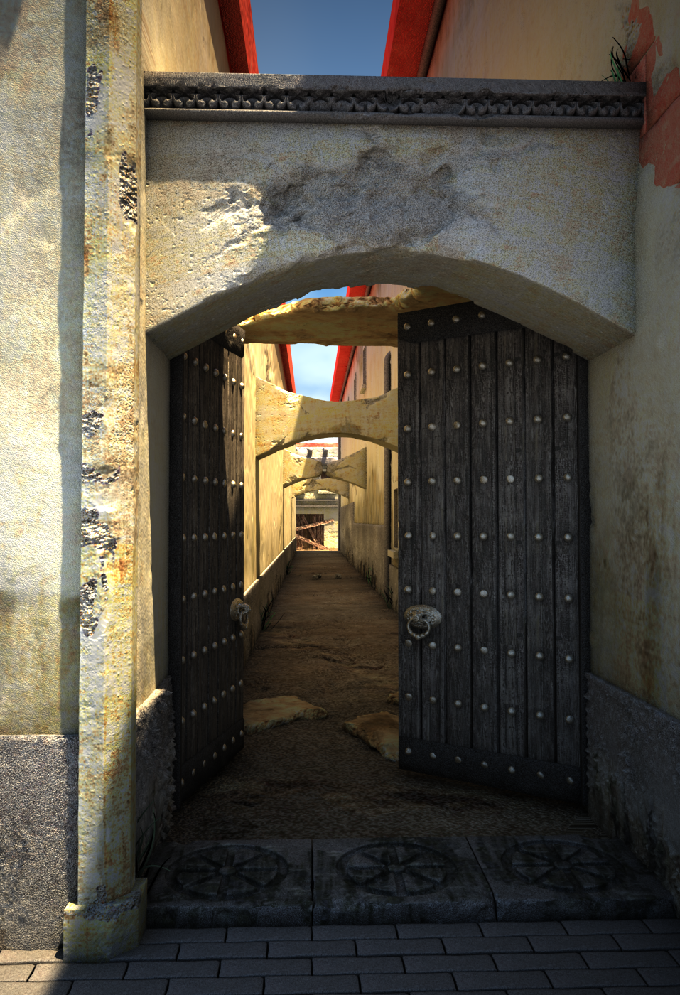 Escena creada con ZBrush, 3DMax, Adobe Photoshop, Xnormal, CrazyBump y renderizada con Vray. El concepto de la escena lo he sacado de un cuadro de mi padre que se encuentra en su blog (http://galeriadisponible, blogspot, ...-callejon.html), al cual le he realizado algunos cambios para hacerlo más personal.