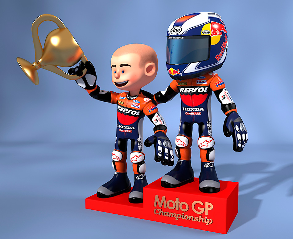 Modelado con 3DS Max, eskineado con Biped+skin, un morph-target para las expresiones, texturas en Ps:
