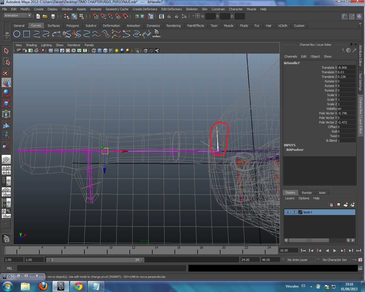 - Selecciona tu IK Handle en el Outliner o la viewport.