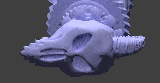 He cambiado la cámara para poder ver mejor el detalle de la calavera.